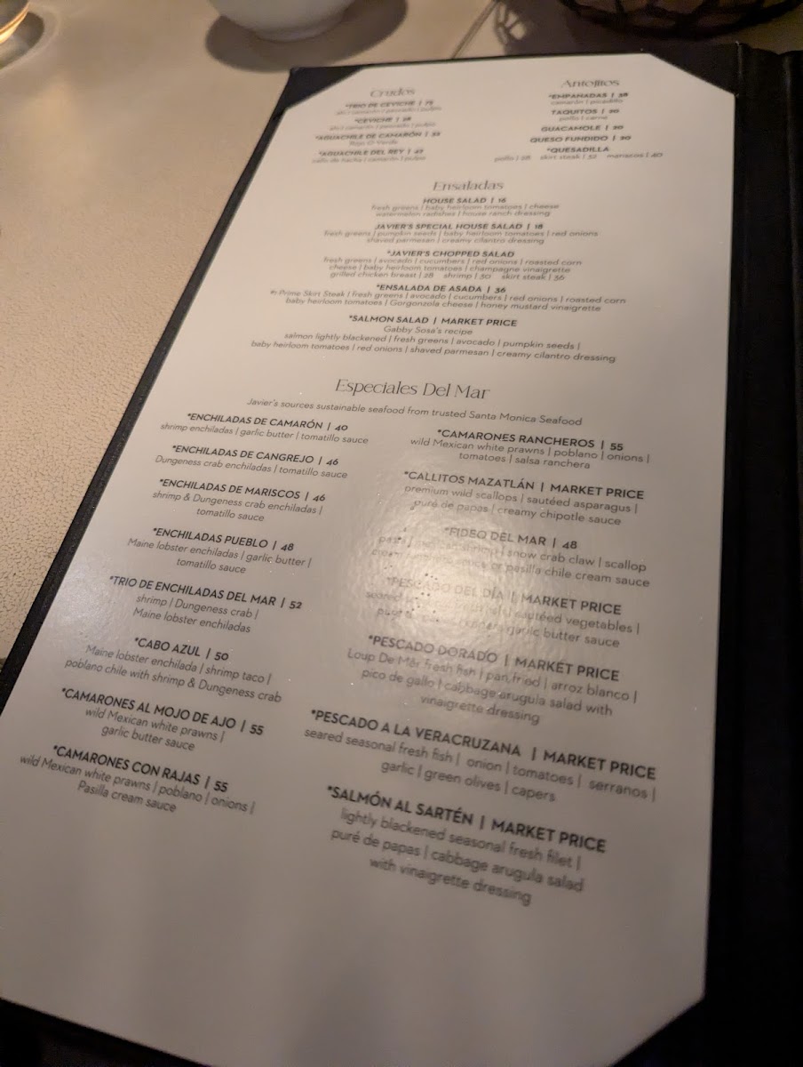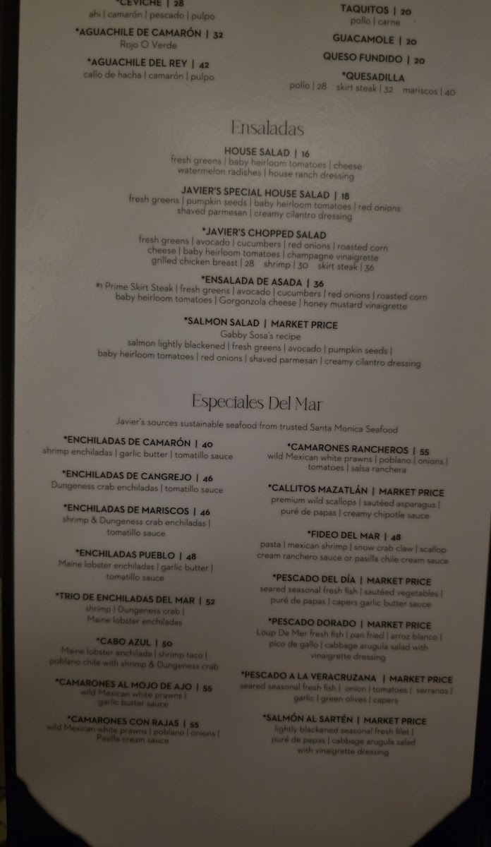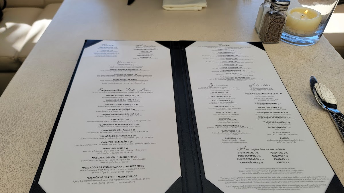 Javier's Restaurant - Newport Beach offers an exquisite dive into authentic Mexican flavors, elevated with a coastal twist. Their menu shines with fresh, vibrant offerings like the Aperitivos Del Mar selection, featuring ceviches of shrimp, octopus, ahi, and fish, each bursting with oceanic freshness. The Antojitos section crafts traditional Mexican street food—empanadas stuffed with shrimp, savory quesadillas, and zesty taquitos—imbued with rich, smoky notes from salsa quemada and chipotle. For lighter fare, the Ensaladas delight with vibrant, garden-fresh ingredients like roasted corn, avocado, and blue cheese, perfectly paired with grilled Angus skirt steak or house-made dressings.